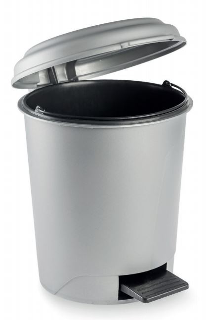 Balde cinza 17,5 litros com pedal. Contém balde interior com asa metálica.