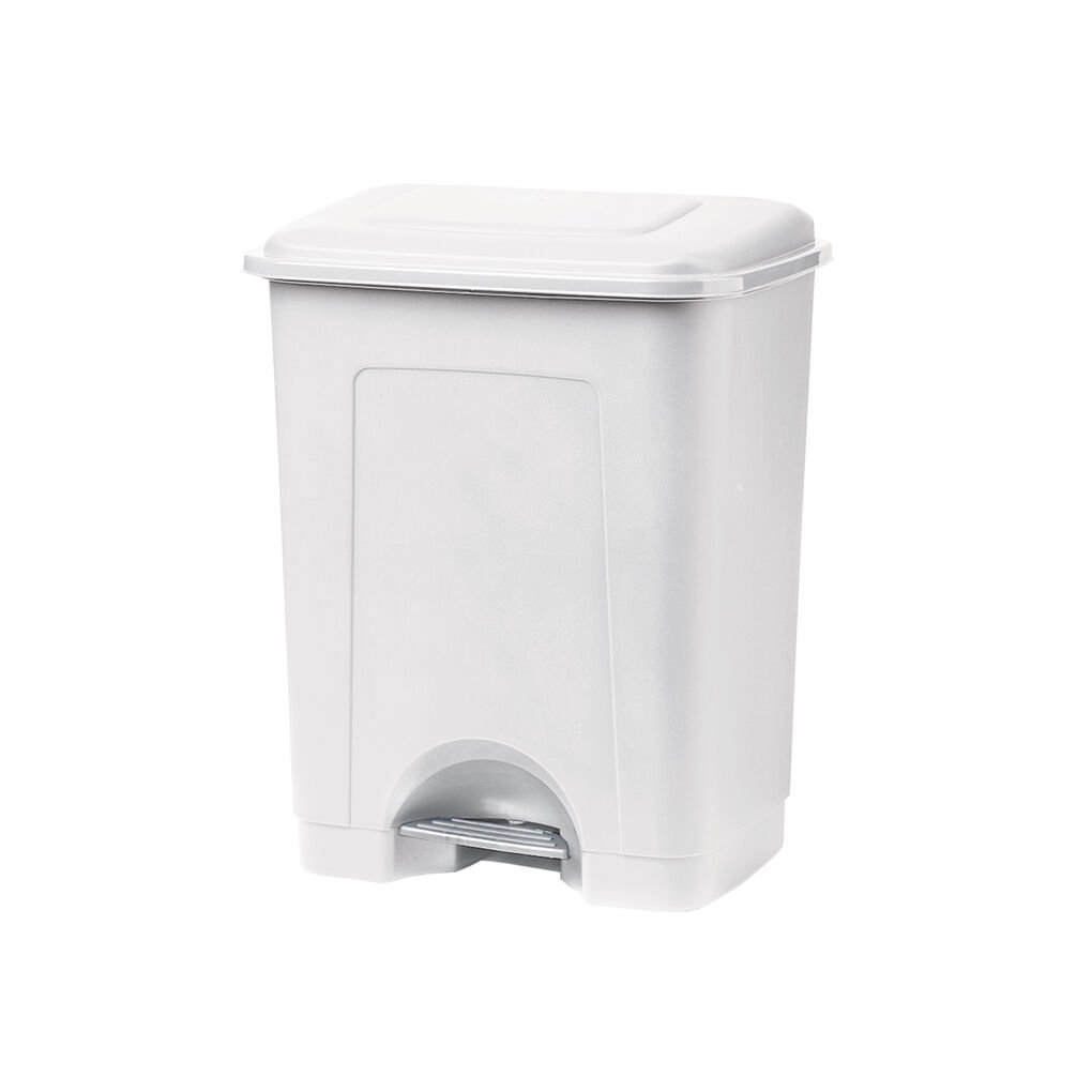 Balde retangular com pedal, fabricado em polipropileno.