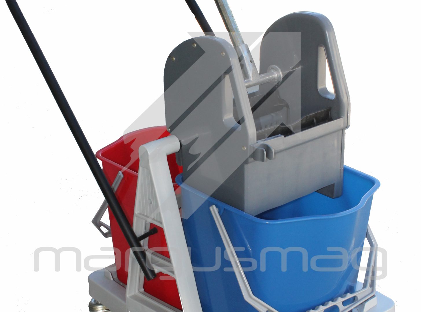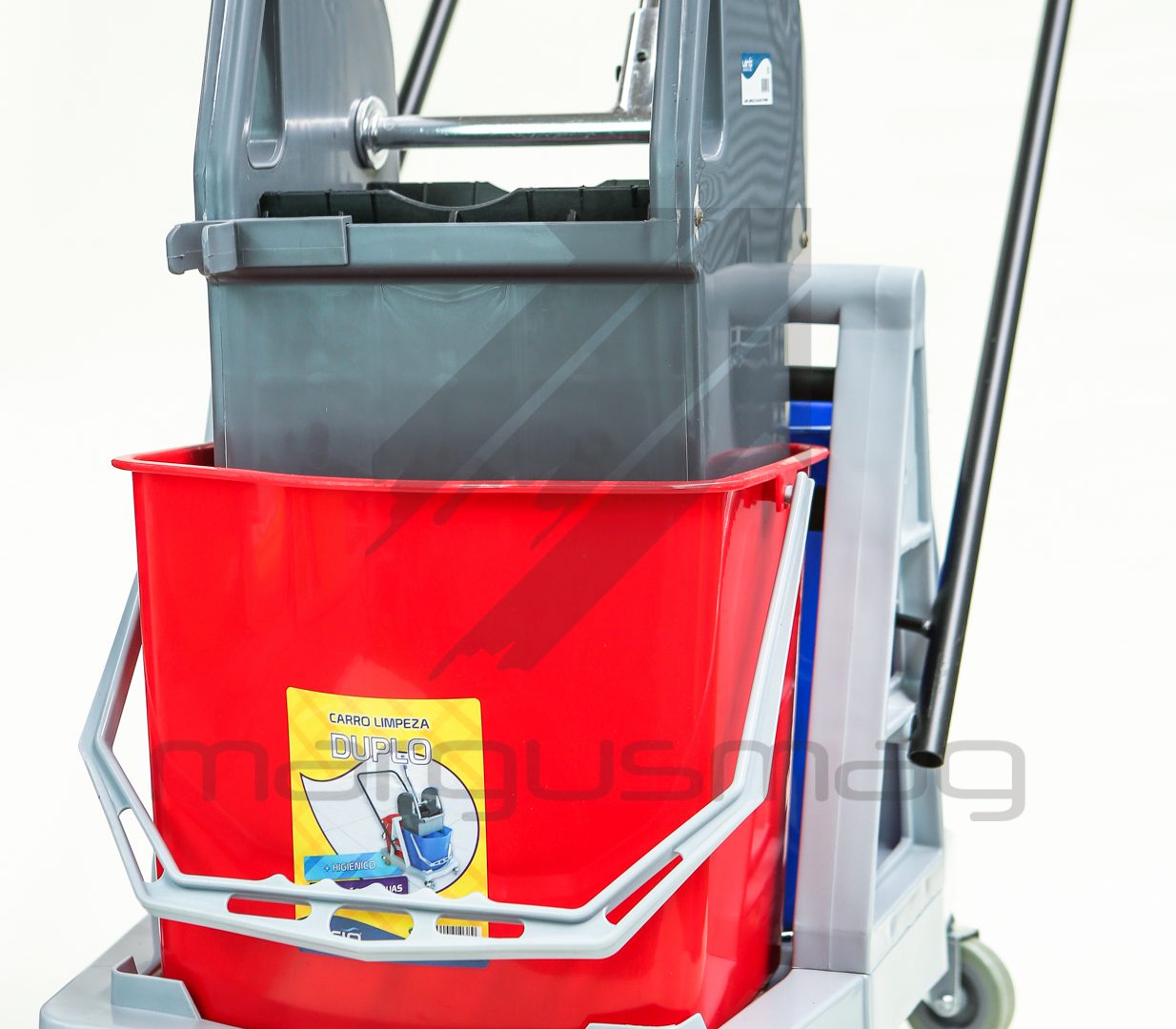 Carro de limpeza DUO MOP com estrutura em ABS e alumínio anodizado. Pega reversível.