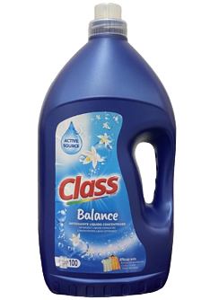 Detergente líquido roupa CLASS BALANCE 5L. Frescura contagiante a uma eficácia máxima, permite-lhe efetuar até 100 lavagens da sua roupa.