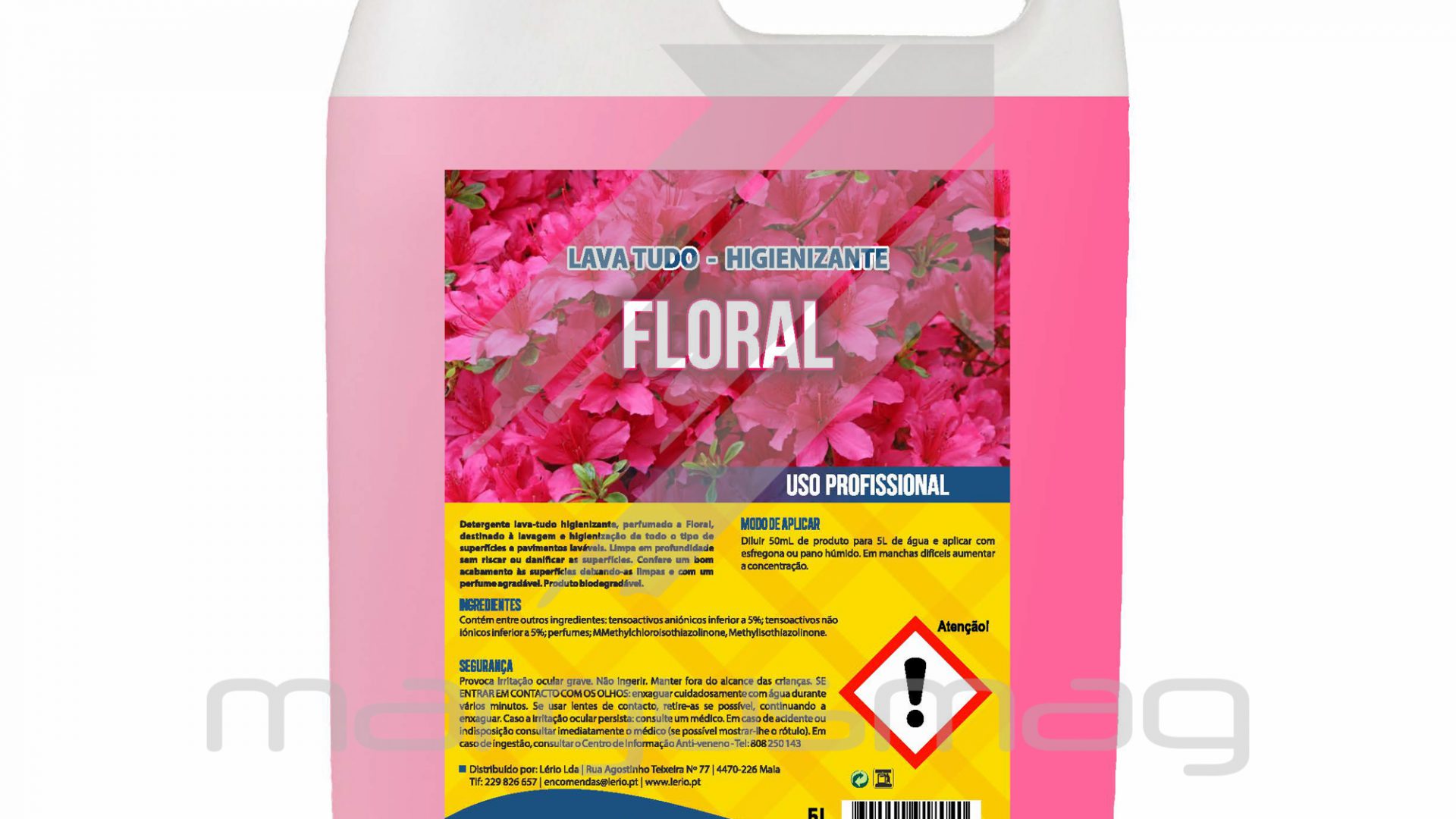 Detergente lava-tudo higienizante, perfumado a floral, destinado à lavagem e higienização de todo o tipo de superfícies e pavimentos laváveis. Limpa em profundidade sem riscar ou danificar as superfícies. Confere um bom acabamento às superfícies deixando-as limpas, brilhantes e com um perfume agradável.