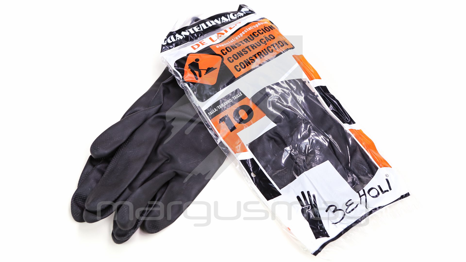 Luva preta industrial grossa em Latex tamanho L. Principalmente usada na construção civil.