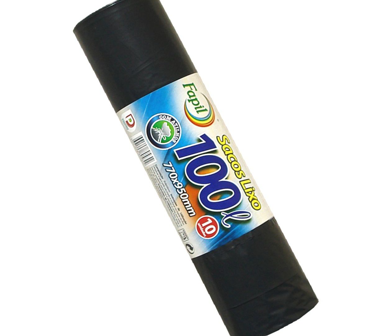Saco plástico preto resistente para lixo. Embalagem de 10 unidades.