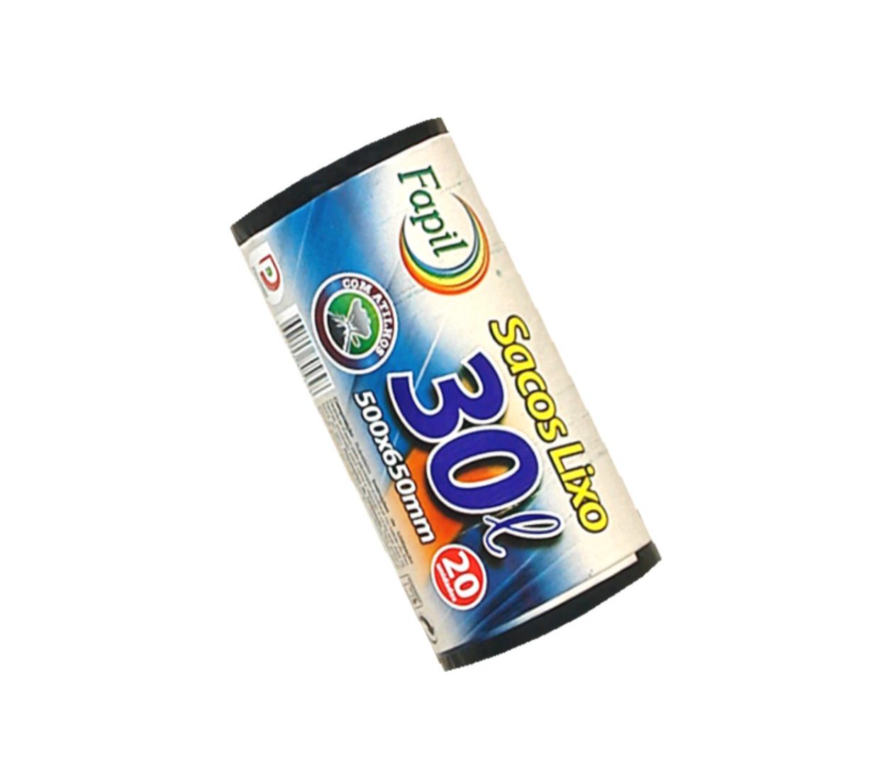 Saco plástico preto resistente para lixo. Embalagem de 20 unidades.
